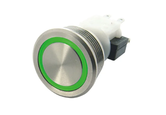 ITW Switches 57-112G 银色圆盖带灯微型按钮开关 面板安装 瞬时操作 Φ16.1mm面板开孔 400 mA @ 32 V 交流 单刀单掷 57-112G