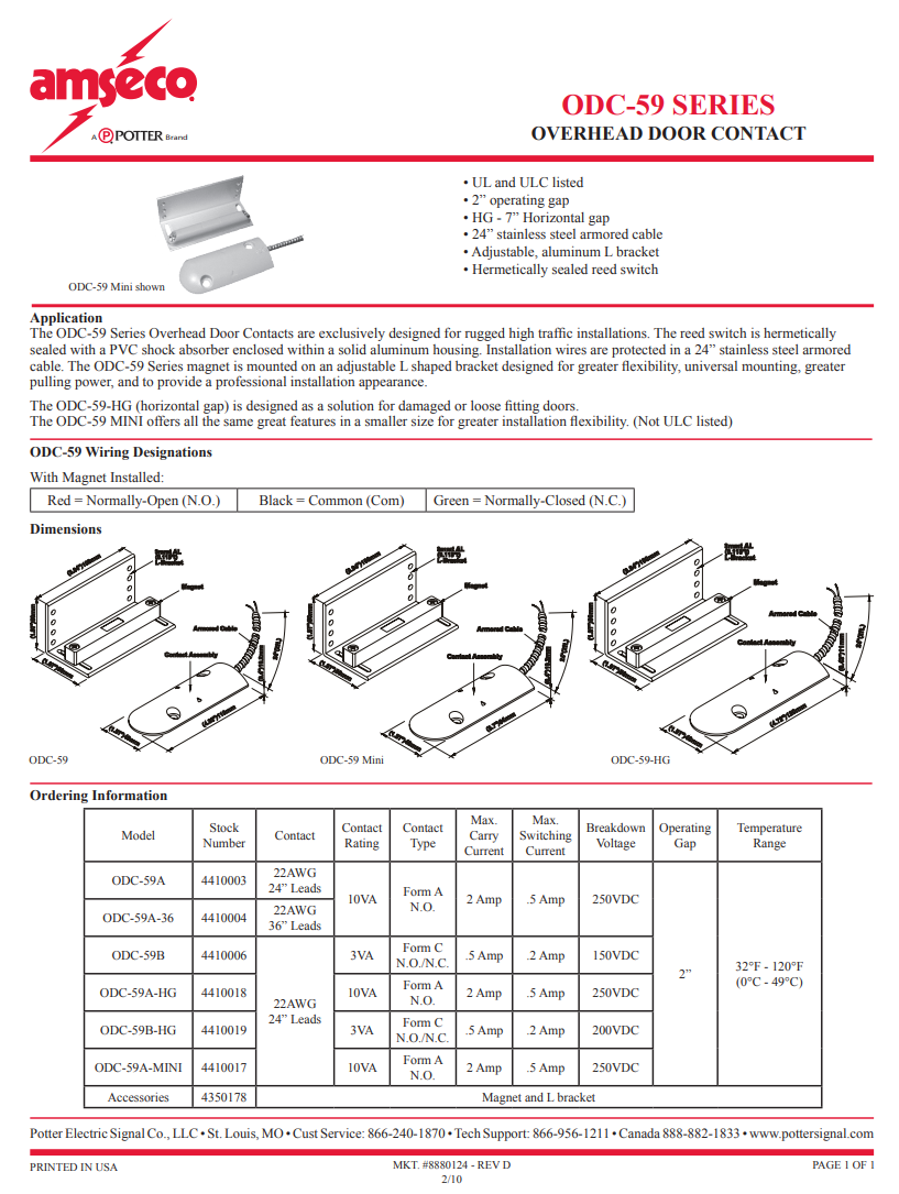 amseco ODC-59系列 顶置门触点