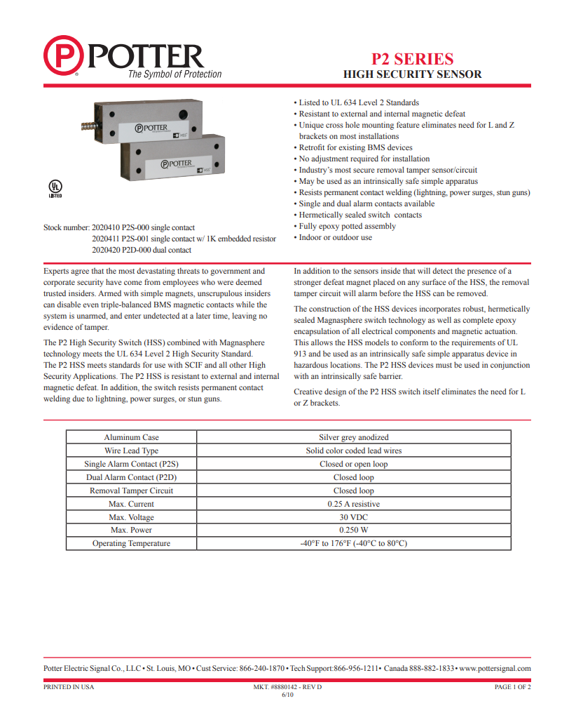 P2高安全性交换机(HSS)与Magnosphere技术相结合,符合UL 634 2级高安全性标准。P2 HSS符合与SCIF和所有其他高安全性应用程序一起使用的标准。P2高速钢能够抵抗外部和内部的磁场破坏。此外,该开关可抵抗雷电、电涌或电击枪造成的接触焊接。