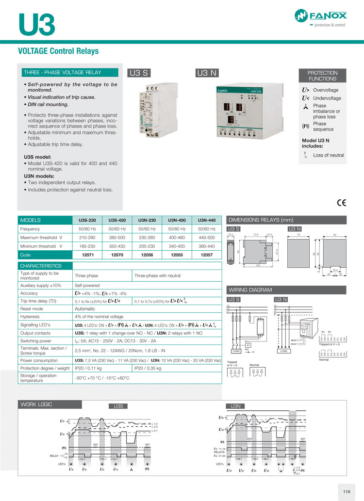 U3-S/U3-N–三相电压控制继电器